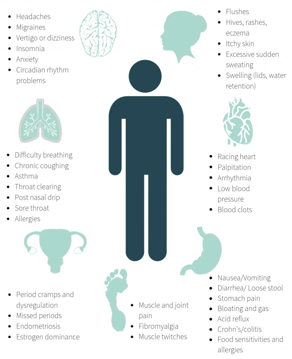 Gut Health: The gut plays a significant role in histamine metabolism. Conditions that affect gut health, such as small intestinal bacterial overgrowth (SIBO), leaky gut syndrome, or irritable bowel syndrome (IBS), can interfere with the body’s ability to metabolize histamine effectively.